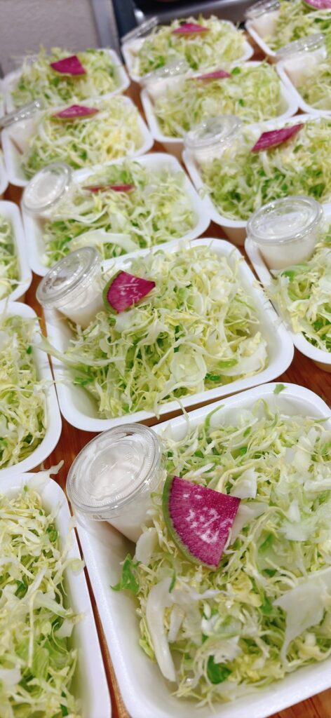 地元のお野菜を使ったお惣菜はお母さんの手作り。なかなか自分じゃお野菜取れないから、にじ色キッチンで手に取って、楽しんでね♪