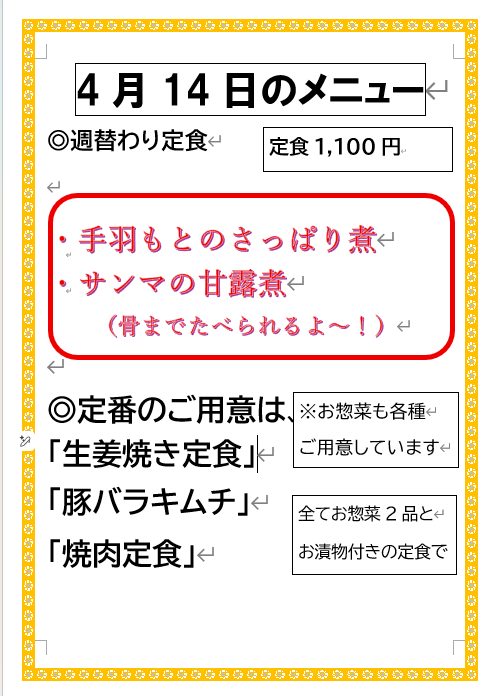 週替わりメニュー、明日からは「鶏手羽元のさっぱり煮」になりますお楽しみに。