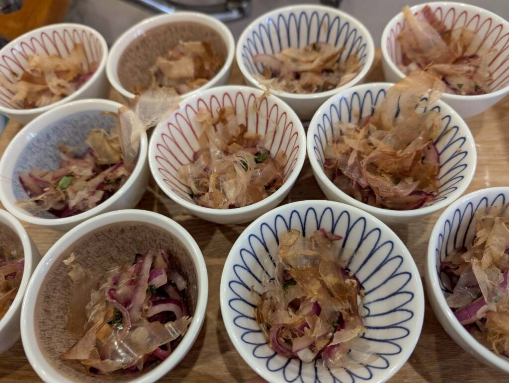 鶏肉とジャガイモがふわふわほくほくでいいお味が染みています。お母さんの煮物ですね。お楽しみに!