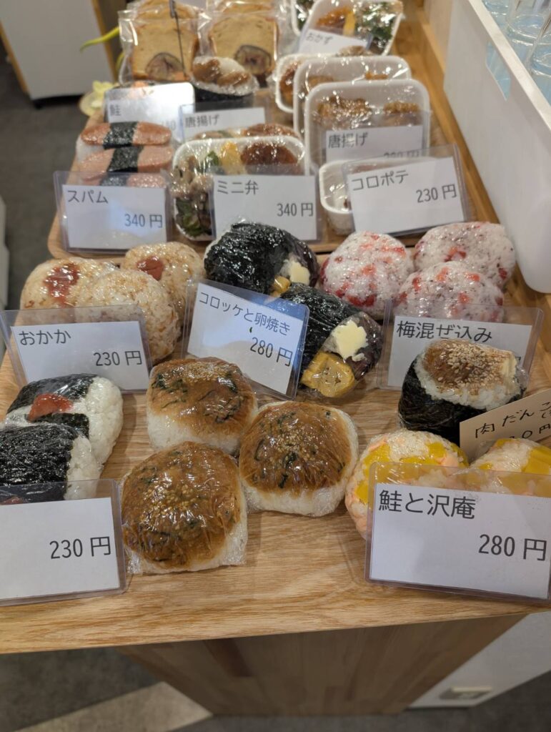 甘味たっぷりの地元産ブランド米でにぎったボリュームたっぷりの「おにぎり」を買ったり食べたりできるところ。