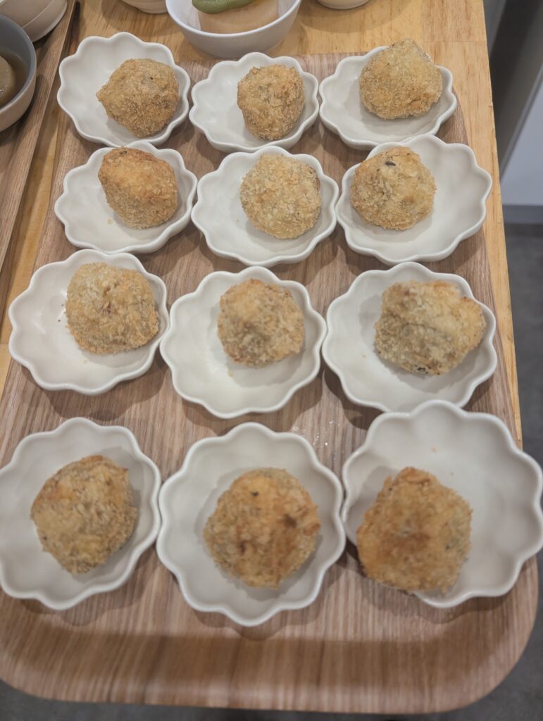11日のお惣菜は、手作りコロッケ、にら玉、白菜と油揚げのくたくた煮をご用意しております。