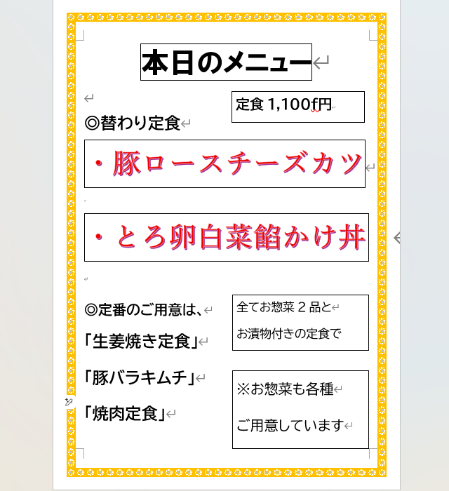 ◎週替わりメニューは、