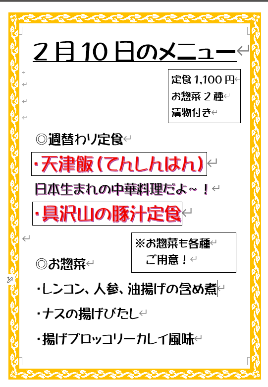 2月2日からの週替わりメニューは、