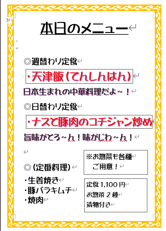 2月19日は、日替わり定食で「ナス🍆と豚バラのコチジャン炒め」をご用意いたします。